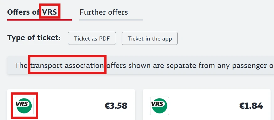 As a rough guide, you can also check in DB Navigator or on the DB websitewhether association tickets are sold for a route. These are marked as Verbund-Angebote, with the logo and under offers of [association name].